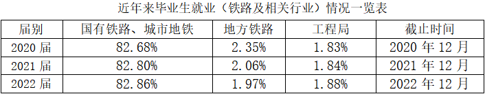 三.我校学生就业主要面向单位:全国各大铁路局集团公司、地方铁路公司、城市轨道交通运营企业(地铁)、国企铁路运输公司、铁路建设单位,上述企业均不招录色盲、色弱毕业生。